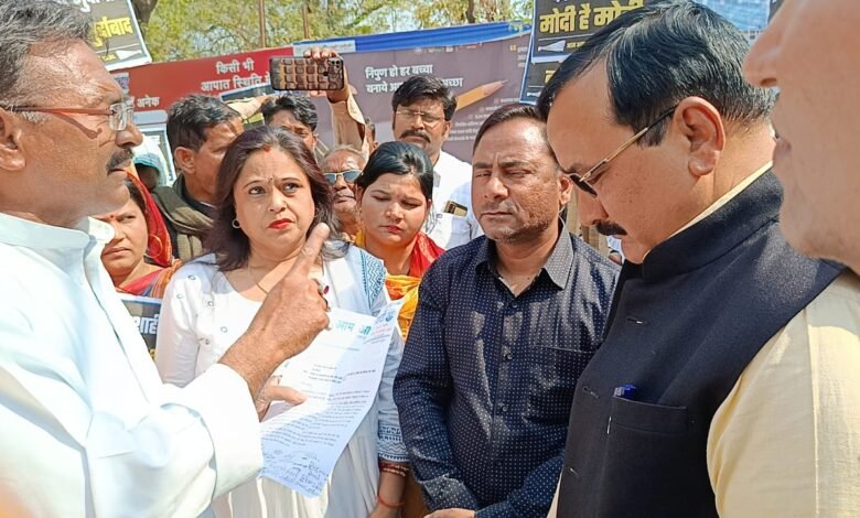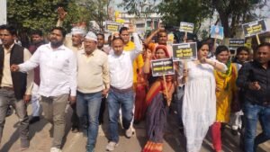 आम आदमी पार्टी कार्यकर्ताओं ने निकाला जुलूस, किया धरना प्रदर्शन