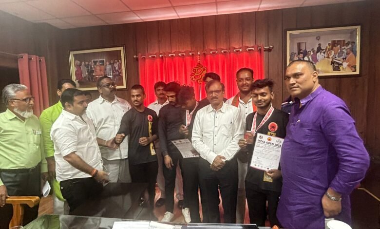 गोरखपुर।इण्डिया ओपन-2023 इंटरनेशनल कराटे चैम्पियनशिप जो कराटे इण्डिया आर्गनाइजेशन के तत्वाधान में फेडरेशन के चेयरमैन हंशी भारत शर्मा के नेतृत्व में ताल कटोरा स्टेडियम न्यू दिल्ली में प्रतियोगिता आयोजित की गयी थी।गोरखपुर चौरी चौरा निवासी कोच अभिषेक जायसवाल की ट्रेनिंग से पारंगत अभिषेक गुप्ता उम्र 15 वर्ष ने 52 किलोग्राम भार में खेलते हुए कांस्य पदक हासिल किया व सन्नी गौतम ने भी उम्र 15 वर्ष 57 किलोग्राम भार में खेलते हुए कांस्य पदक प्राप्त किया। इन दोनों खिलाड़ियों के साथ आकाश गुप्ता एवं मनोज चैहान जो अभी ट्रेनिंग में है, इन सभी खिलाड़ियो एवं कोच अभिषेक जायसवाल को महापौर डा0 मंगलेश श्रीवास्तव ने शुभकामना देते हुए कांस्य पदक प्राप्त किये जाने पर दोनों खिलाड़ियों को सम्मानित किया गया। महापौर द्वारा कहा गया कि आप लोग गोरखपुर की शान है इसी तरह अपना एवं देश का नाम रौशन करें तथा भविष्य में और तरक्की करें। आप सभी के उज्जवल भविष्य की कामना की जाती है।