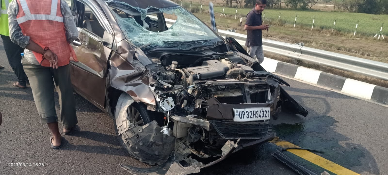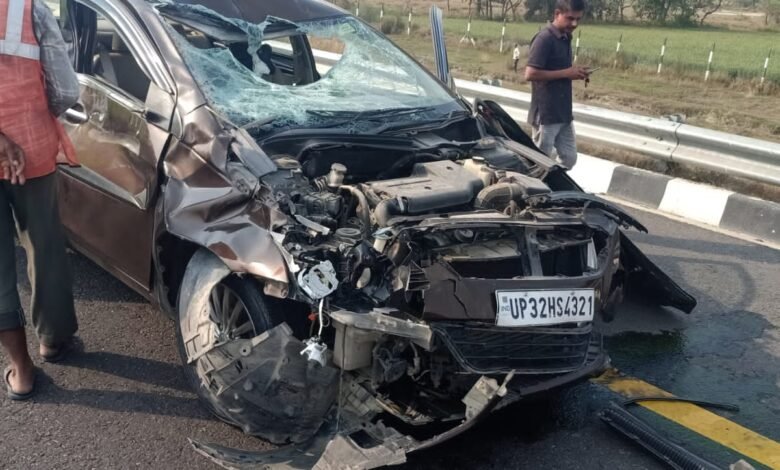 पूर्वांचल एक्सप्रेस वे पर गाय से टकराई कार