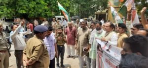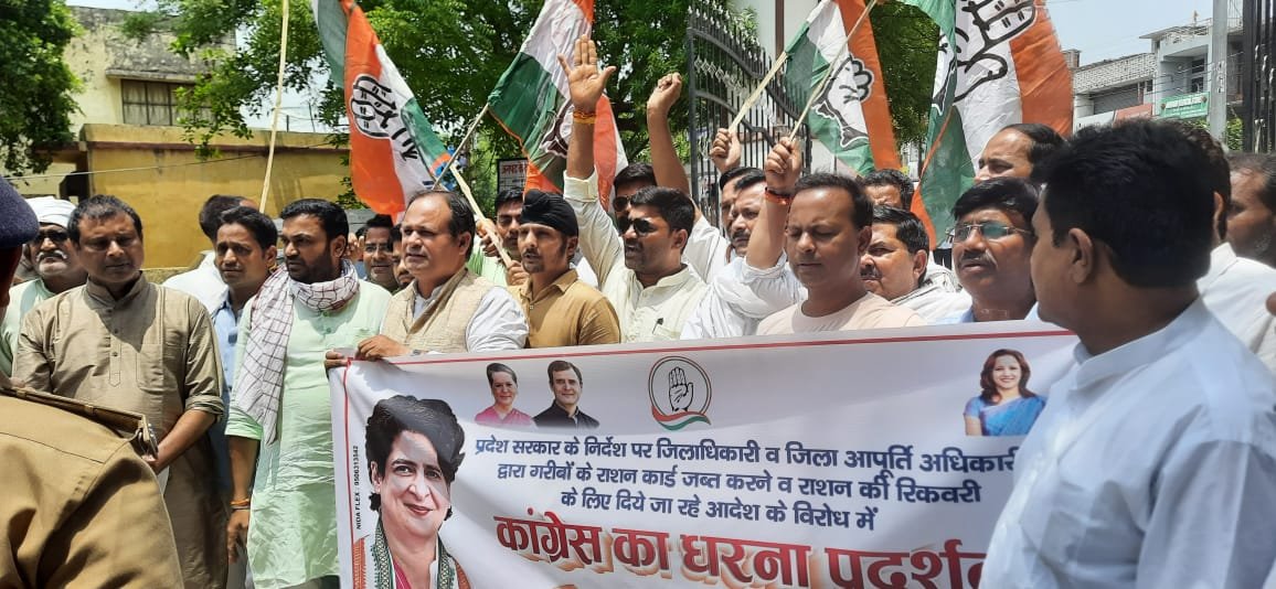 सुल्तानपुर(निसार अहमद)।कांग्रेस पार्टी के जिला अध्यक्ष ने योगी के बुलडोजर को निशाने पर लेते हुए व्यवस्था पर करारा प्रहार किया है उन्होंने कहा कि बुलडोजर के डर से लोग राशन कार्ड सरेंडर कर दे रहे हैं। इस तरह का भय का माहौल नागरिकों में व्याप्त नहीं होना चाहिए।कांग्रेस पार्टी के कार्यकर्ता बैनर और पोस्टर लेकर सड़क पर उतरे।इस दौरान उन्होंने राशन कार्ड सरेंडर कराए जाने के कार्यक्रम का खुला विरोध किया। जिला अध्यक्ष अभिषेक सिंह राणा के साथ सभासद राजदेव शुक्ल समेत बड़ी संख्या में कांग्रेस कार्यकर्ता और पदाधिकारी प्रदर्शन में शामिल हुए। बुधवार के इस प्रदर्शन की सूचना पर क्षेत्राधिकारी नगर राघवेंद्र चतुर्वेदी,एसडीएम सदर सीपी पाठक और नगर कोतवाल राम आशीष उपाध्याय पुलिस बल के साथ मौके पर जमा थे।इस दौरान प्रशासनिक अफसरों की मौजूदगी में प्रधानमंत्री नरेंद्र मोदी और मुख्यमंत्री आदित्यनाथ योगी मुर्दाबाद के नारे भी लगाए गए। कांग्रेस के प्रदर्शन के दौरान कलेक्ट्रेट का मुख्य गेट आवागमन के लिहाज से प्रभावित रहा।सुरक्षा व्यवस्था के मद्देनजर गिरफ्तारी वैन भी पुलिस विभाग की तरफ से खड़ी की गई थी।प्रदर्शनकारियों ने आर-पार की लड़ाई लड़ने का ऐलान किया है।जिलाध्यक्ष अभिषेक सिंह राणा ने कहा कि लोग यह नहीं समझ पा रहे हैं कि कौन पात्र है और कौन अपात्र है।बुलडोजर से हमारा घर गिरा दिया जाएगा इस भय से लोग राशन कार्ड सरेंडर कर दे रहे हैं। सूबे के मुखिया योगी आदित्यनाथ कहते हैं कि यह सब हमारी जानकारी में नहीं है उनका यह बयान झूठा है।हमारे कई मित्र प्रधान हैं,जो बताते हैं कि ऐसा फरमान नागरिकों को सुनाया जा रहा है। सरकार का यह बेहद गलत कदम है। कांग्रेस पार्टी इसकी निंदा करती है। इसी के संदर्भ में आज हम कलेक्ट्रेट में प्रदर्शन करने आए हैं।