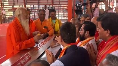 महाराष्ट्र के मुख्यमंत्री एकनाथ शिंदे के अयोध्या पहुंचने पर राम कथा पार्क पर हजारों शिवसैनिकों ने अपने नेता का जबरदस्त स्वागत किया। उन्होंने राम कथा पार्क के पास स्थित राम मंदिर आंदोलन के महानायक परमहंस रामचंद्र दास की समाधि स्थल पर भी माथा टेका। यहां से मुख्यमंत्री शिंदे पैदल ही समर्थकों के साथ आगे बढ़े। बाद में गाड़ियों के काफिले के साथ गेट नंबर तीन से राम जन्मभूमि परिसर में प्रवेश किया। यहां पहुंचने पर सबसे पहले उन्होंने रामलला के दरबार में हाजिरी लगाई। शिंदे के स्वागत के लिए हजारों की संख्या में शिवसैनिक अयोध्या पहुंचे हैं। हनुमानगढ़ी पर शिवसैनिकों में जबरदस्त उत्साह दिख रहा है। एलईडी टीवी के जरिए शिवसेना की उपलब्धियों को प्रसारित किया जा रहा है । यहां बड़ी संख्या में शिवसैनिक महाराष्ट्रीयन भाषा में बज रहे गानों पर जमकर थिरक रहे हैं। और अपने नेता शिंदे की जय जय कार कर रहे हैं।