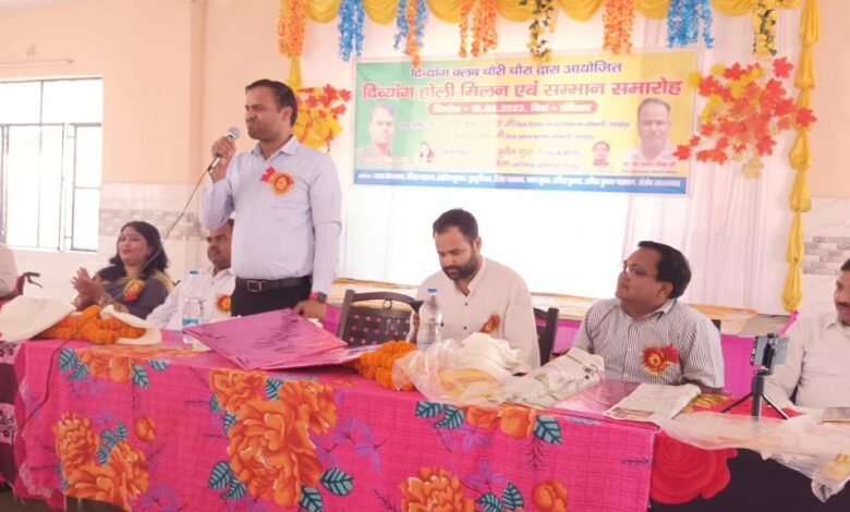 चौरी चौरा/गोरखपुर। आज दिव्यांग क्लब चौरी चौरा द्वारा आयोजित दिव्यांग होली मिलन एवं सम्मान समारोह का आयोजन मंगल भवन मुंडेरा बाजार में किया गया जिसमें लगभग सैकड़ों दिव्यांग जन (महिला पुरुष) ने भाग लिया उक्त कार्यक्रम के मुख्य अतिथि मा० संदीप कुमार मौर्य जिला दिव्यांगजन सशक्तिकरण अधिकारी गोरखपुर मा० वेद प्रकाश मिश्र जिला समाज कल्याण अधिकारी गोरखपुर।विशिष्ट अतिथि श्रीमती सुनीता गुप्ता नगर अध्यक्ष मुंडेरा बाजार डॉ0 उमेश चंद्र किरण प्रभारी जिला दिव्यांग पुनर्वास केंद्र गोरखपुर रहे।
