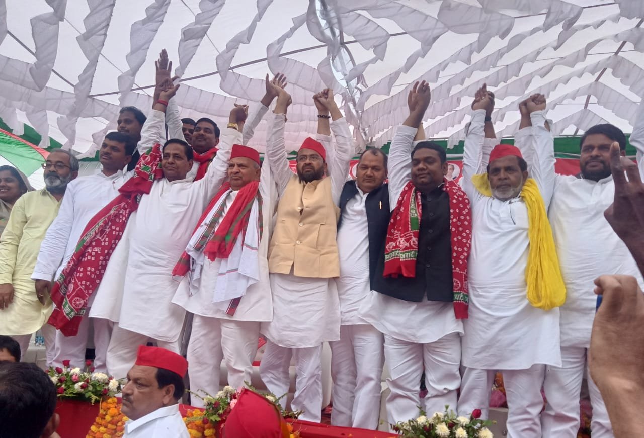 नगर के तिकोनिया पार्क में सपा की हुई जनसभा