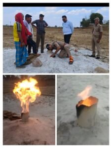 बोर में कान लगा कर सुनने से पानी जैसे बहने या उबलने जैसी आवाज सुनाई पड़ रही कि, तथा सूंघने पर डीजल पेट्रोल जैसी गंध आ रही है। बोर के मुंह पर आग लगाने पर आग पकड़ ले रही है, तथा गैस जलने लगती हैं।