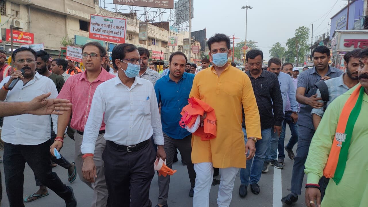गोरखपुर।महानगर शाम 6:00 बजे नगर निगम से गणेश चौराहा तक सांसद रवि किशन शुक्ला, महापौर डॉ0 मंगलेश श्रीवास्तव द्वारा समस्त पार्षदगण एवम नगर निगम के समस्त अधिकारी कर्मचारियों की के साथ मिलकर नगर निगम गोरखपुर के समस्त 80 वार्डों में जनसंपर्क, जनसहयोग एव जन भागीदारी के माध्यम से सम्पूर्ण स्वच्छता के महाभियान की शुरुआत की गई।नगर आयुक्त गौरव सिंह सोगरवाल ने कहा कि सम्पूर्ण स्वच्छता महाभियान के तहत महानगर के समस्त वार्डों में साफ-सफाई, नालों पर किये गए अवैध अतिक्रमण को हटाने का कार्य, आम जनमानस को सिंगल यूज़ प्लास्टिक के दुष्प्रभाव एवम घरों से निकलने वाले गीला एवम सूखा कूड़ा को अलग-अलग नीले एवम हरे डस्टबिन में एकत्र करके डोर-टू-डोर कूड़ा कलेक्शन की गाड़ी में डालने के लिए जागरूक किया जाएगा।