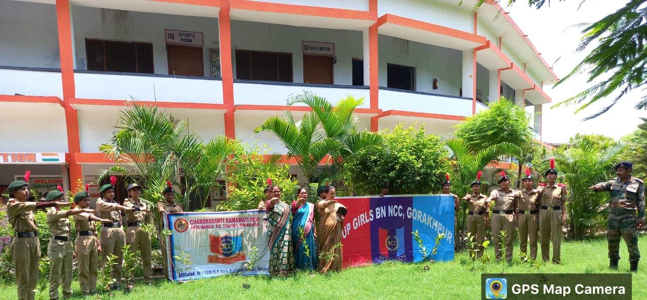 गोरखपुर। 15 युपी गर्ल्स बटालियन से संबंध चन्द्रकान्ति रमावती देवी आर्य महिला पी०जी० कॉलेज गोरखपुर की एनसीसी कैडेट्स ने आज एनसीसी अधिकारी कैप्टन डॉ अपर्णा मिश्रा के नेतृत्व में महाविद्यालय प्रांगण में वृहद वृक्षारोपण कार्यक्रम का अभियान चलाया। इस अवसर पर कॉलेज प्रांगण में सागोन, शीशम, पीपल, नीम, जामुन सहजन आदि के लगभग 50 पौधों का रोपण किया गया। साथ ही पौधों को गोद लेकर उनके संरक्षण का संकल्प भी लिया।