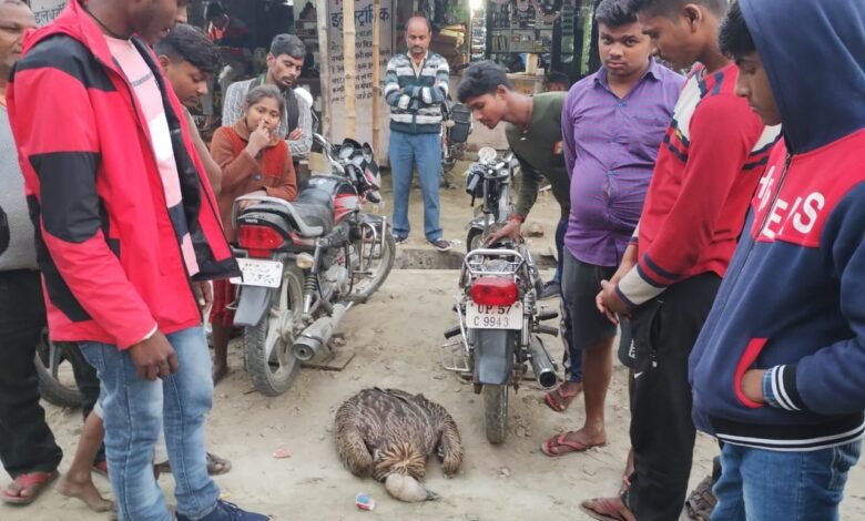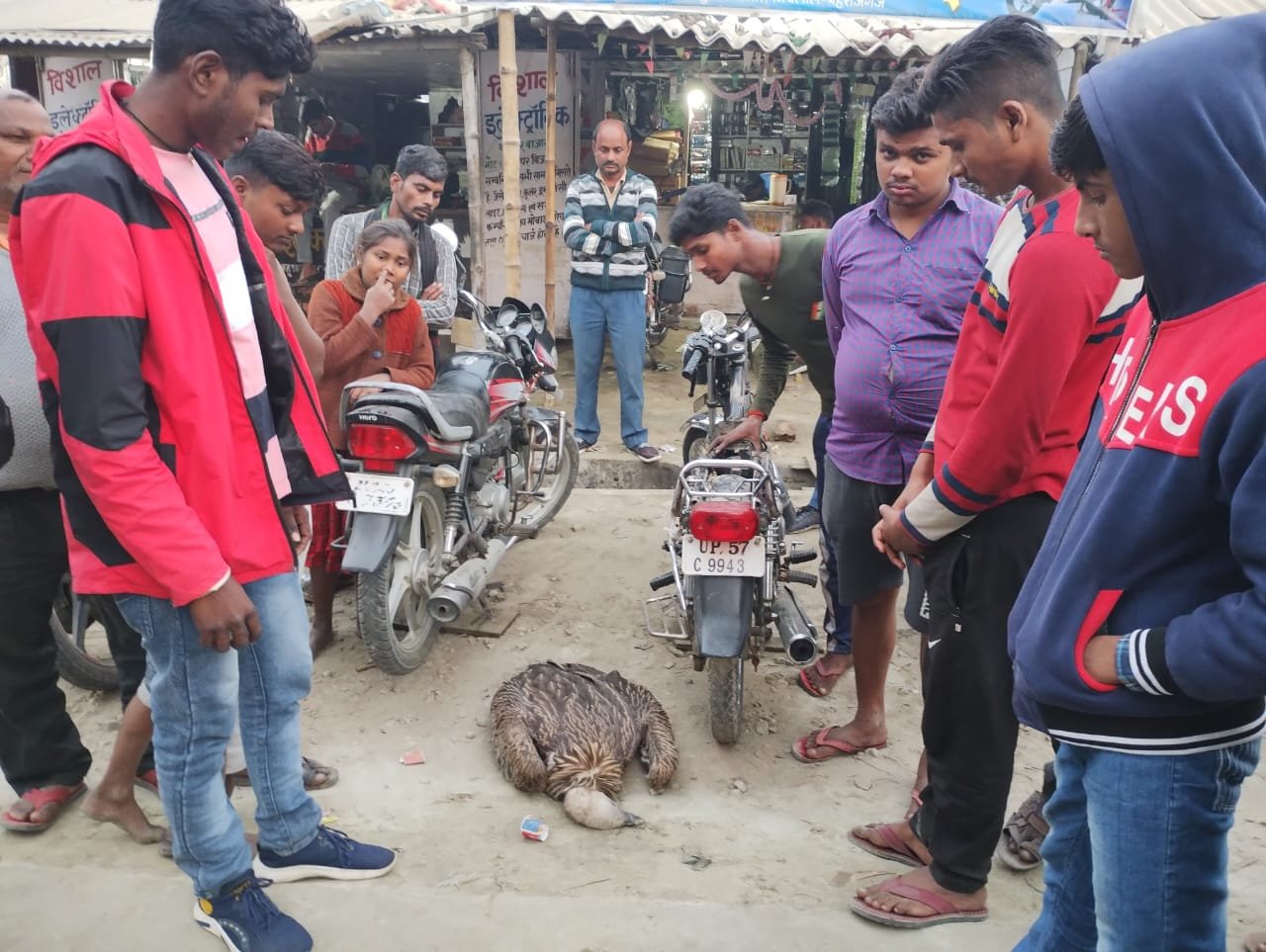 सड़क पर गिरा गिद्ध देखने पहुंचे लोग