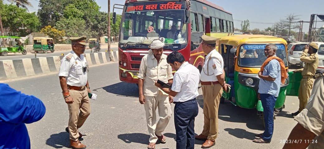 गोरखपुर।शासन द्वारा दिये गये 15 दिवसीय अभियान के निर्देश के क्रम में गोरखपुर वरिष्ठ पुलिस अधीक्षक व पुलिस अधीक्षक यातायात डॉ महेंद्र पाल सिंह के मार्गदर्शन में यात्री कर अधिकारी गोरखपुर रविचन्द त्यागी, निरीक्षक यातायात मनोज कुमार, निरीक्षक यातायात अजीत कुमार पांडे, एवं यातायात पुलिस की संयुक्त टीम द्वारा पैडलेगंज चौराहा, विश्वविद्यालय चौराहा एवं महाराणा प्रताप चौराहा पर अवैध रूप संचालित हो रहे अनाधिकृत रूप से खड़े वाहनों के विरुद्ध कार्रवाई की गई ,जिसमें 8 बस को कागजात प्रस्तुत न करने पर यातायात यार्ड में भेजकर सीज की कार्रवाई की गई एवं 5 बसो के विरुद्ध एमबी एक्ट के अंतर्गत चालान की कार्रवाई की गई।इसी क्रम में महाराणा प्रताप चौराहा एवं विश्वविद्यालय चौराहा पर अनाधिकृत रूप से खड़े 34 वाहनों का चालान किया गया एवं रू0 11000/- जुर्माना वसुल कर राजकीय कोष में जमा कराया गया। इसके अतिरिक्त रेलवे रोडवेज के सामने रोडवेज की बसों द्वारा दूसरे लेन को खाली रखने हेतु आवश्यक दिशा निर्देश दिया गया एवं रोडवेज की सामने के कट को बैरिकेडिंग द्वारा बंद करके एक लेन को आमजन यात्रियों के आवागमन हेतु खाली कराया गया। साथ ही साथ महाराणा प्रताप चौराहे के पास कट को बंद करा कर उल्टी लेन में जाने वाले ई-रिक्शा व ऑटो को भी प्रतिबंधित किया गया। शासन के निर्देशानुसार यह कार्रवाई निरंतर चलती रहेगी।
