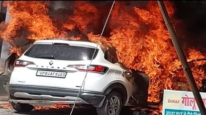 इससे पहले ही कार सवार सभी लोग उतरकर दूर भाग गए। वहीं भयंकर आग की लपटें उठती देख आसपास के दुकानदारों ने दुकानों के शटर गिराए और सुरक्षित स्थानों पर दूर चले गए। आसपास मौजूद राहगीरों ने भी वहां से दूर हटने के लिए दौड़ लगा दी। घटना की जानकारी फायर बिग्रेड को दी गई। इस पर टीम मौके पर पहुंची और कुछ देर में आग पर काबू पा लिया। संजय ने बताया, संभवत: तारों में शॉर्टसर्किट से आग लगी है।