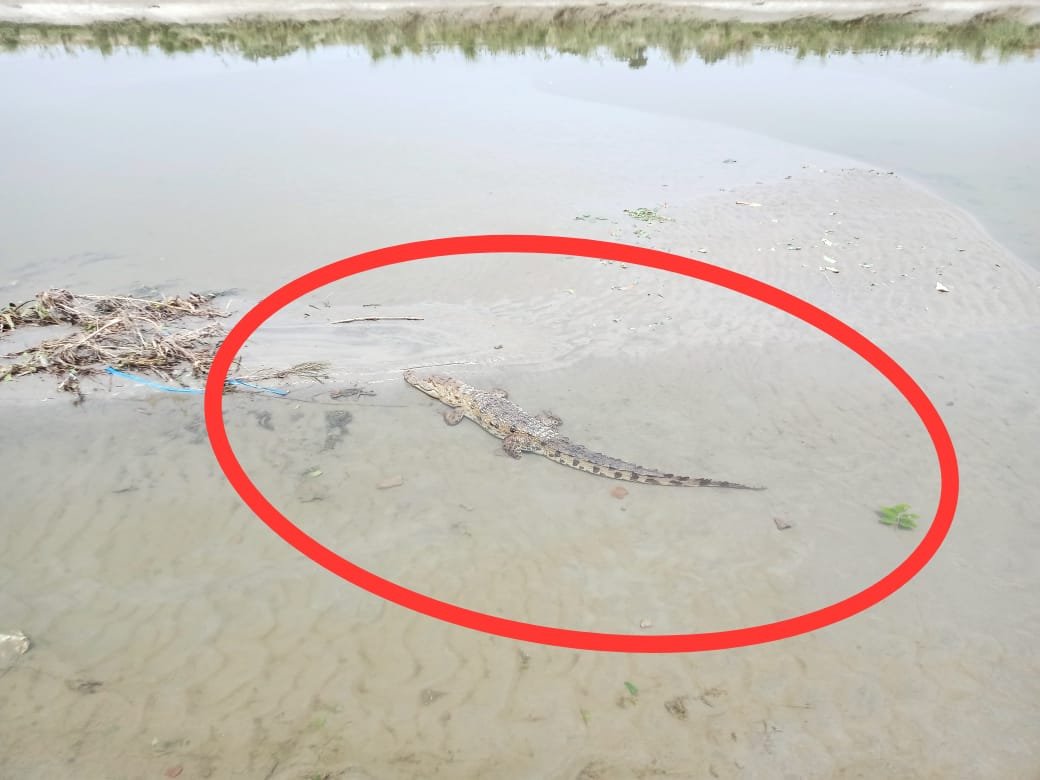 नहर में मगरमच्छ दिखने से मचा हड़कंप, सूचना के बाद भी नहीं पहुंचे वन कर्मी