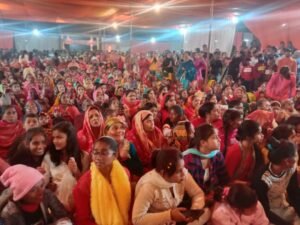 बैतालपुर के रामनगर में भजन संध्या कार्यक्रम में पहुंचे मां शारदा सिद्ध शक्तिपीठ मैहर के पूर्व प्रधान पुजारी श्रीदेवी प्रसाद पाण्डेय का हुआ भब्य स्वागत