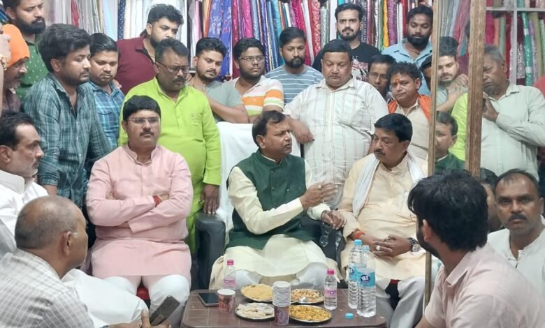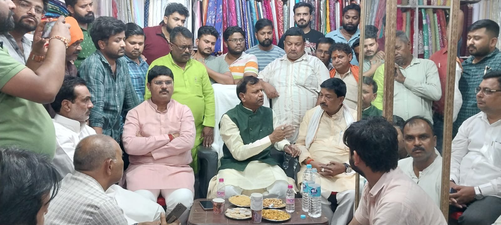 कन्हैया लाल गुप्ता के आवास पर बड़ी संख्या में उपस्तिथ व्यापारियों से चर्चा किया.और रुस्ट कन्हैया लाल गुप्ता को मनाकर नामांकन पत्र वापस कराया.